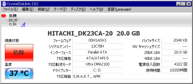 と、これだけではアレなので、情報を載せておきましょう (CrystalDiskInfo 2.0.2)。
