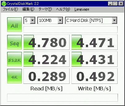 続きまして、ベンチマーク テスト! @ Windows2000 (CrystalDiskMark 2.2)
