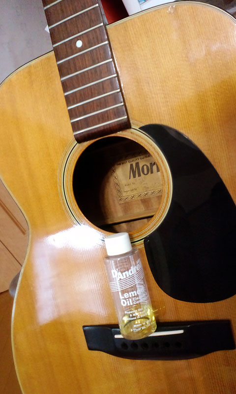 汚れとかも気になり出すので弦をバチバチと切り、レモンオイル で指板を清掃。