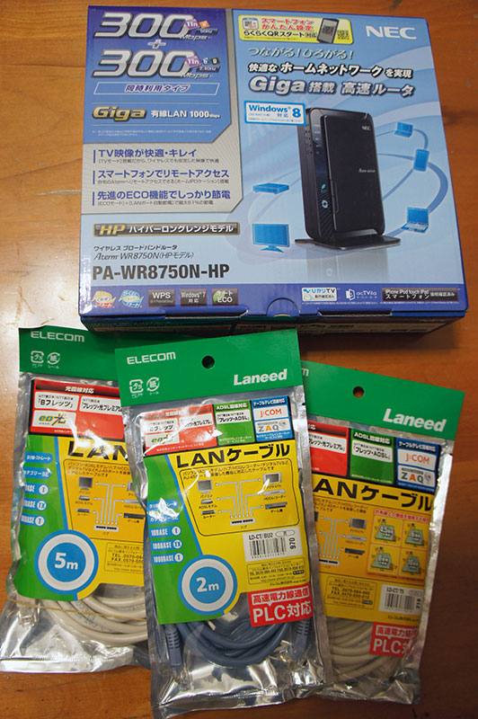 映像をLAN経由で行うことになる機器:パソコン/テレビ/BDレコーダー は無線では不安定になるだろうから、必ず有線で繋ぎたかった。