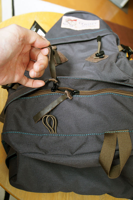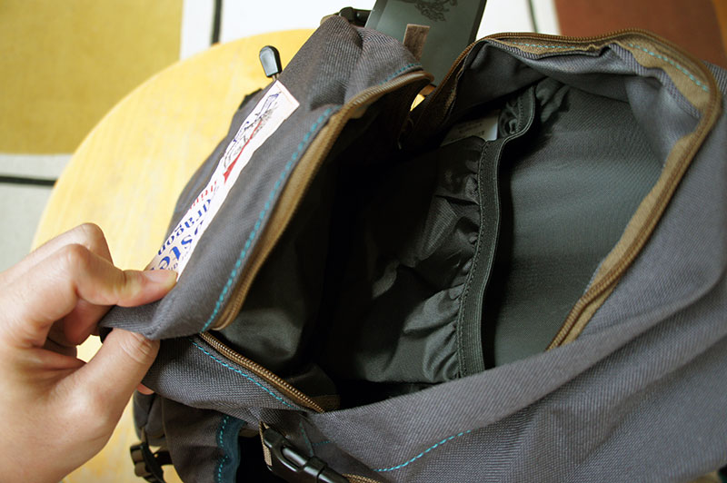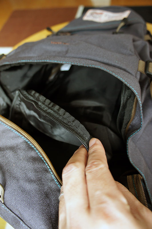 間仕切りの取り外しはできないけど、ファスナーの端はベルト状に伸びていて、ファスナーのコマが奥に食い込んで…開か…ない…クソッ! なんてトラブルにはならない構造。