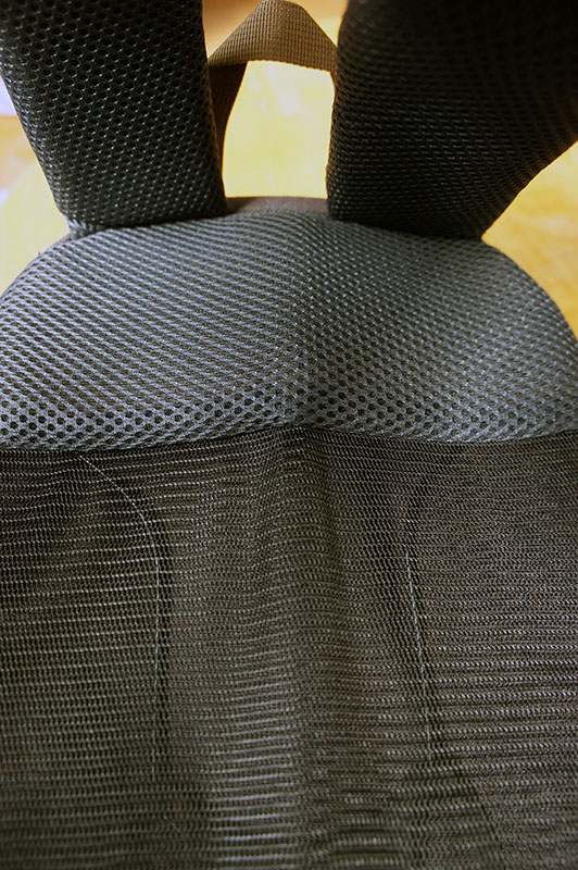 肩のベルトの体に当たる面はメッシュ生地を使っていて、ムレを防止してます。
