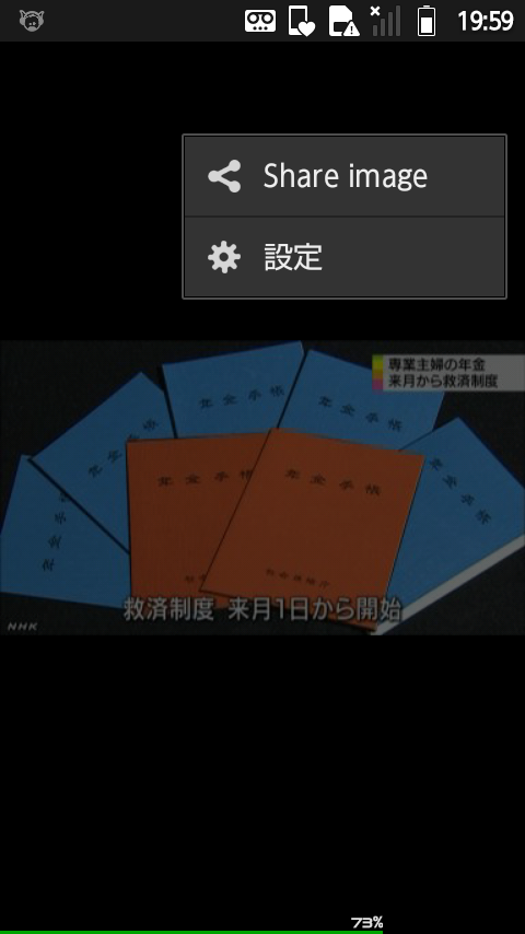 上のバーから画像の保存もできるし、メニューから画像の Share も可能。